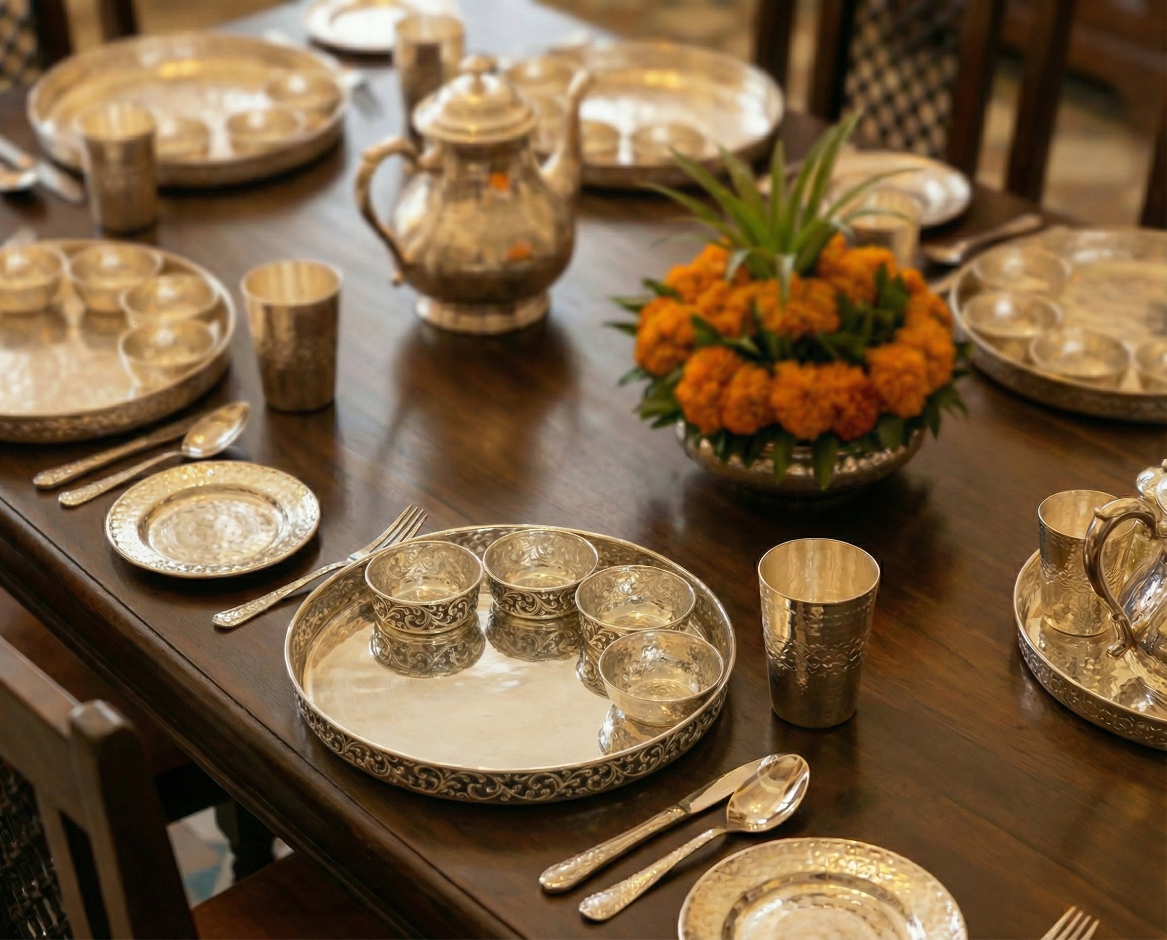 Silver was never a choice we made.It was the one that was already madefor us — by every generation that came before.It lives in the jewellery that gets passeddown with both hands. In the vessels thatcome out of the cupboard only whensomething worth celebrating has arrived.Silver does not dress up for occasions.It was built for them.