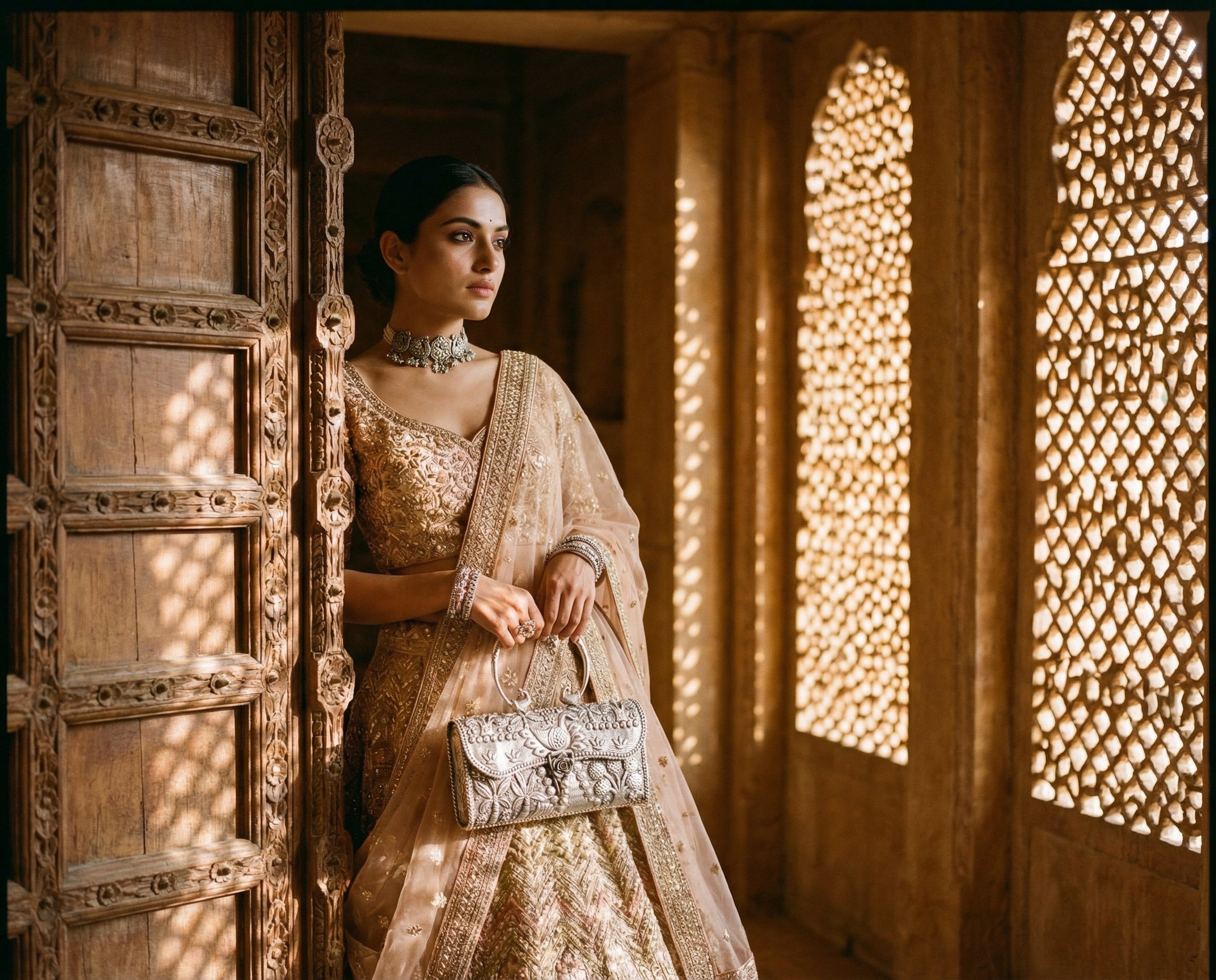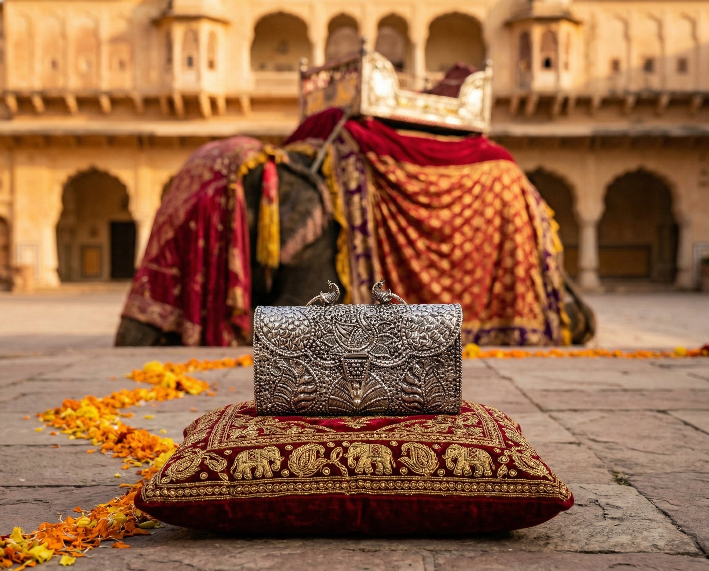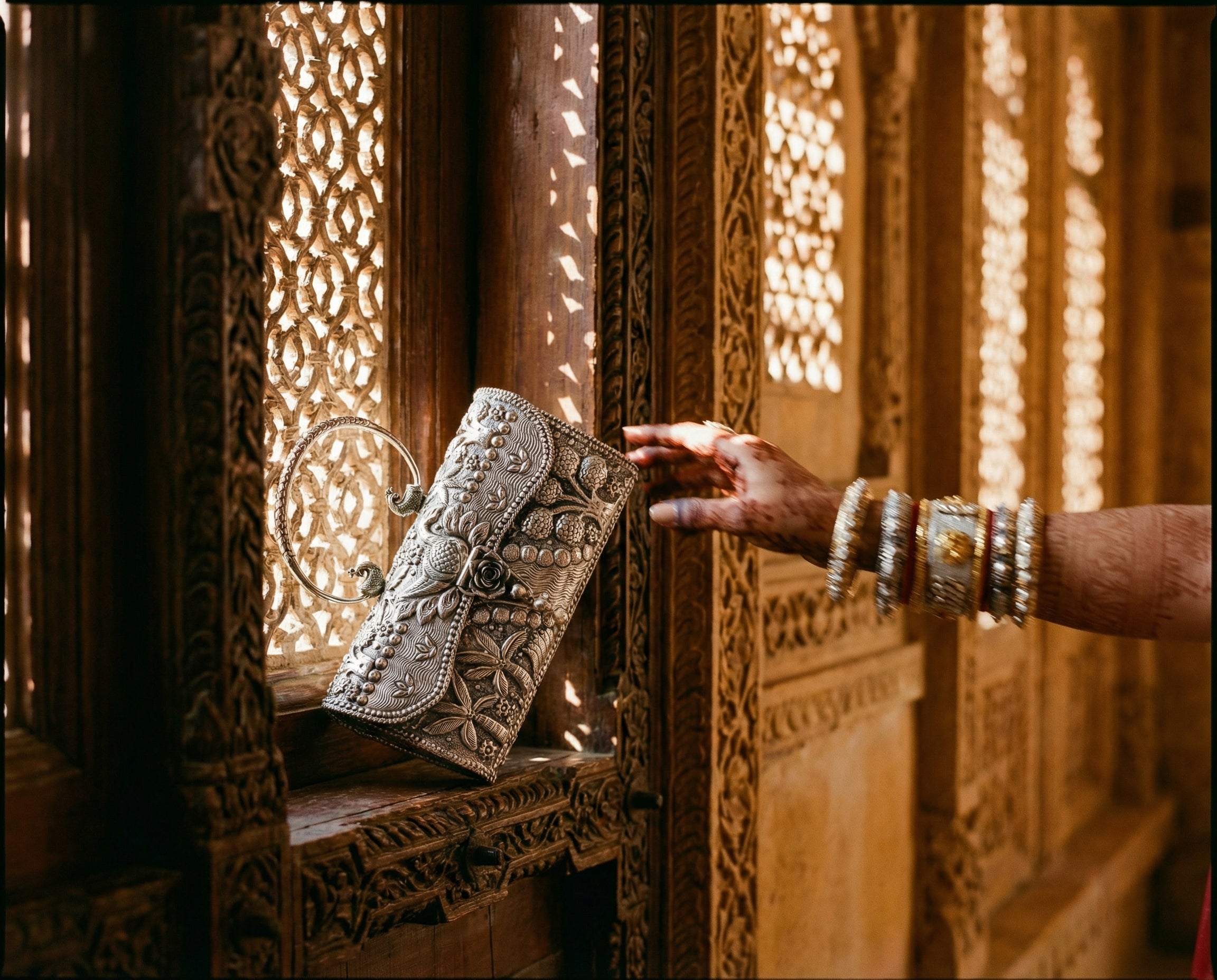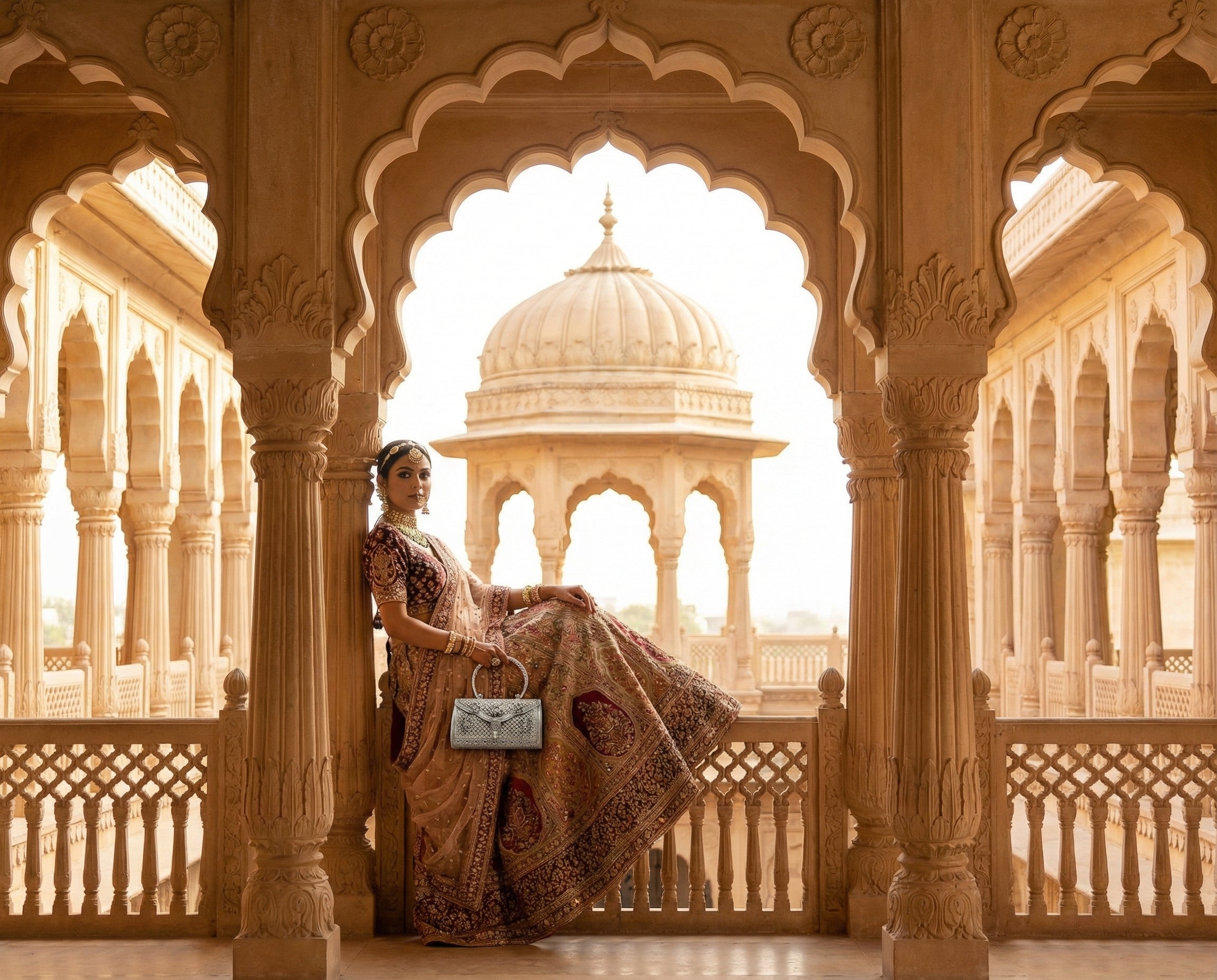The clutch she carries is present forall of it — through the pheras, throughthe photographs, on the table where theelders sit and watch the next chapter begin.It is handed to her mother during themandap and picked up again before thenext ritual calls her forward.It is always there.It deserved to always be made accordingly.