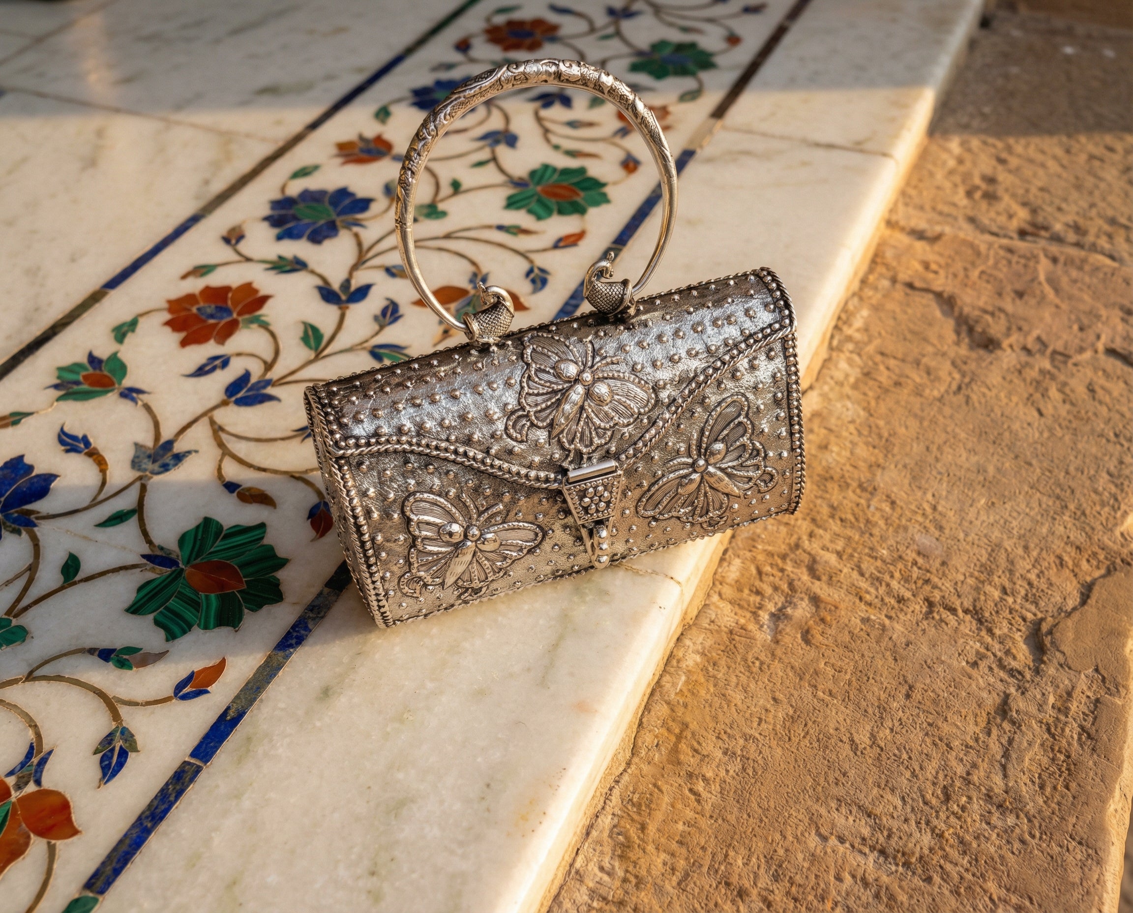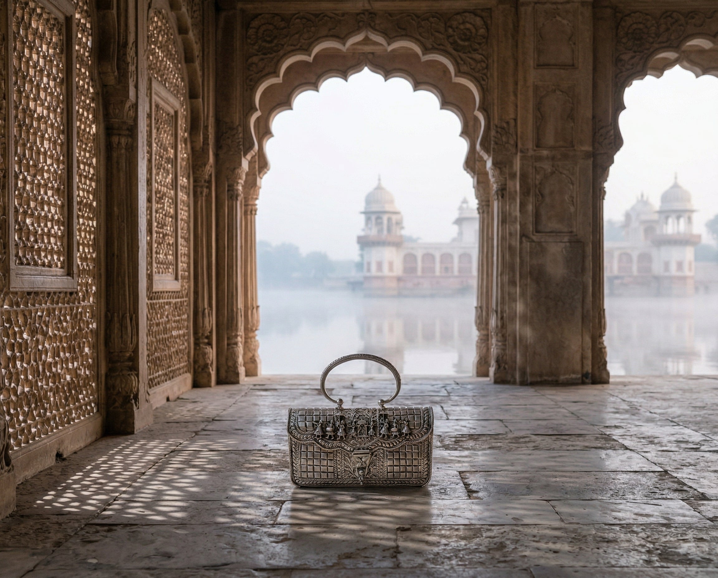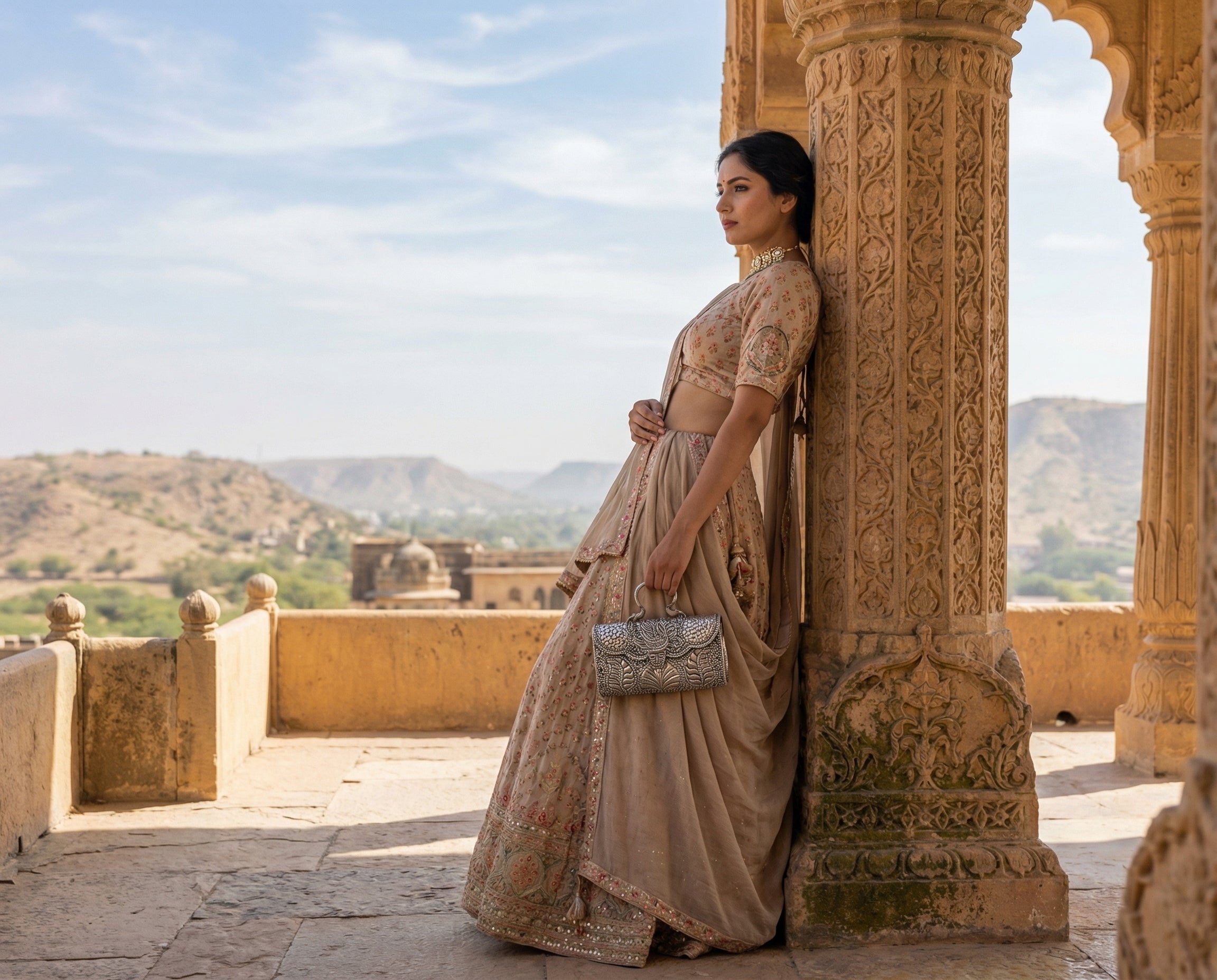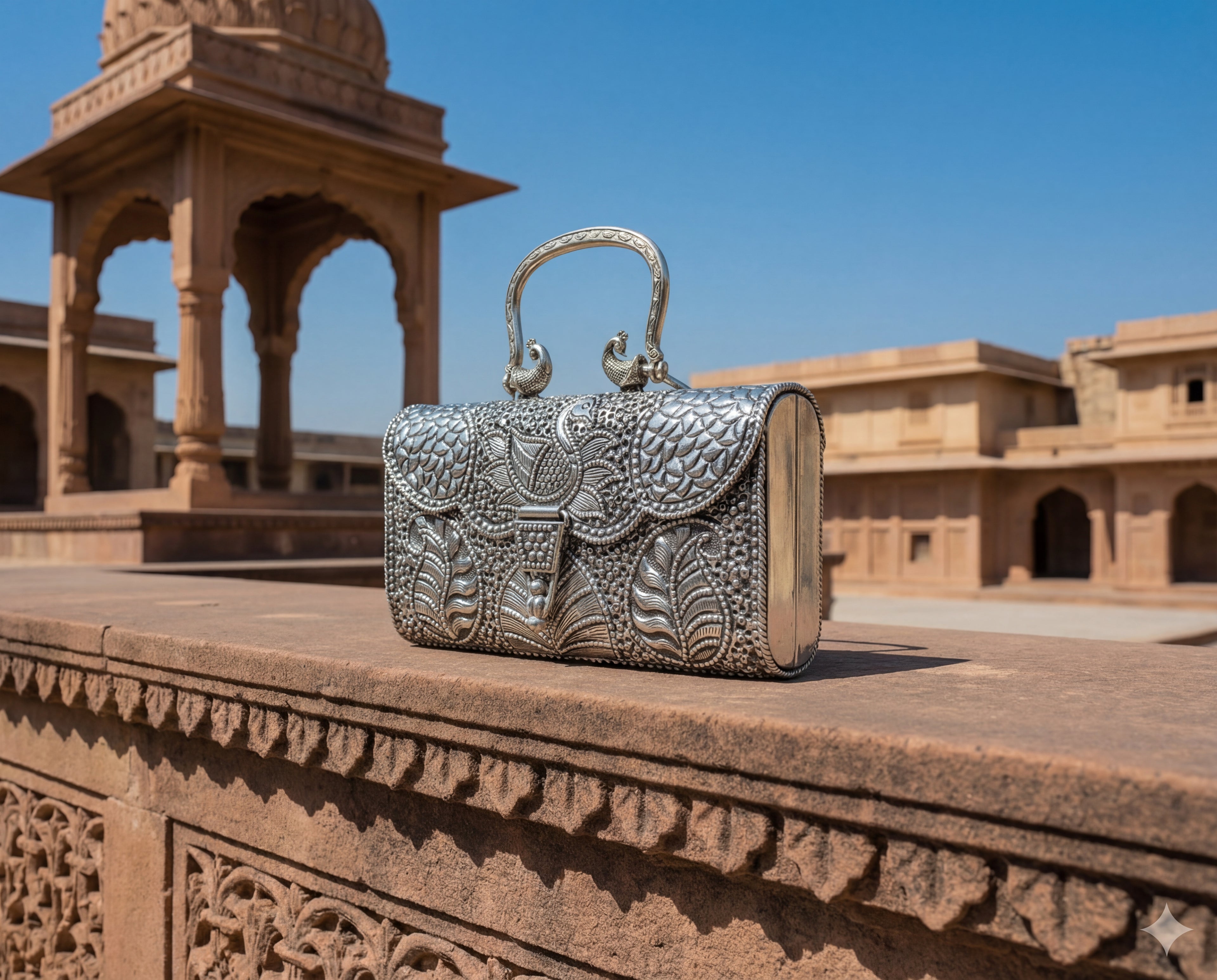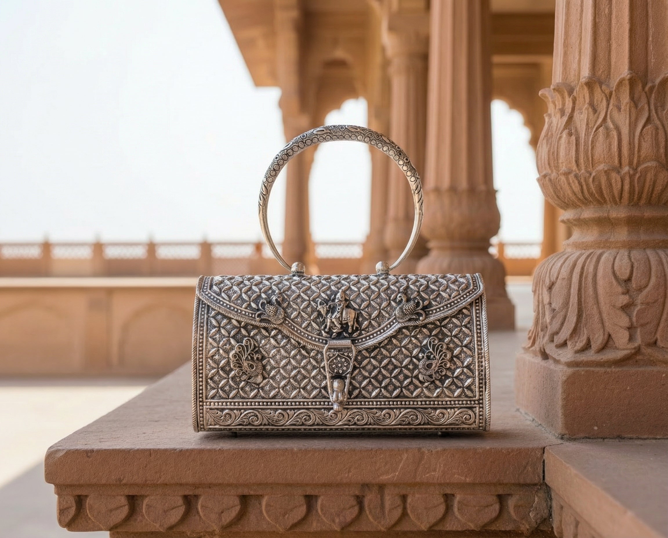 The clutch she carries is present forall of it — through the pheras, throughthe photographs, on the table where theelders sit and watch the next chapter begin.It is handed to her mother during themandap and picked up again before thenext ritual calls her forward.It is always there.It deserved to always be made accordingly.